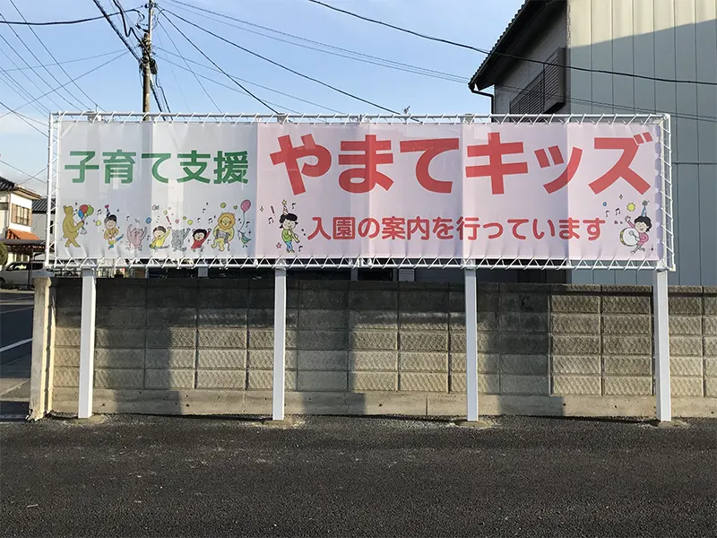 懸垂幕と横断幕は、イベントやキャンペーンの告知に最適な大型看板です。広範囲から視認でき、インパクトがあるため、集客力を高める強力なツールです。